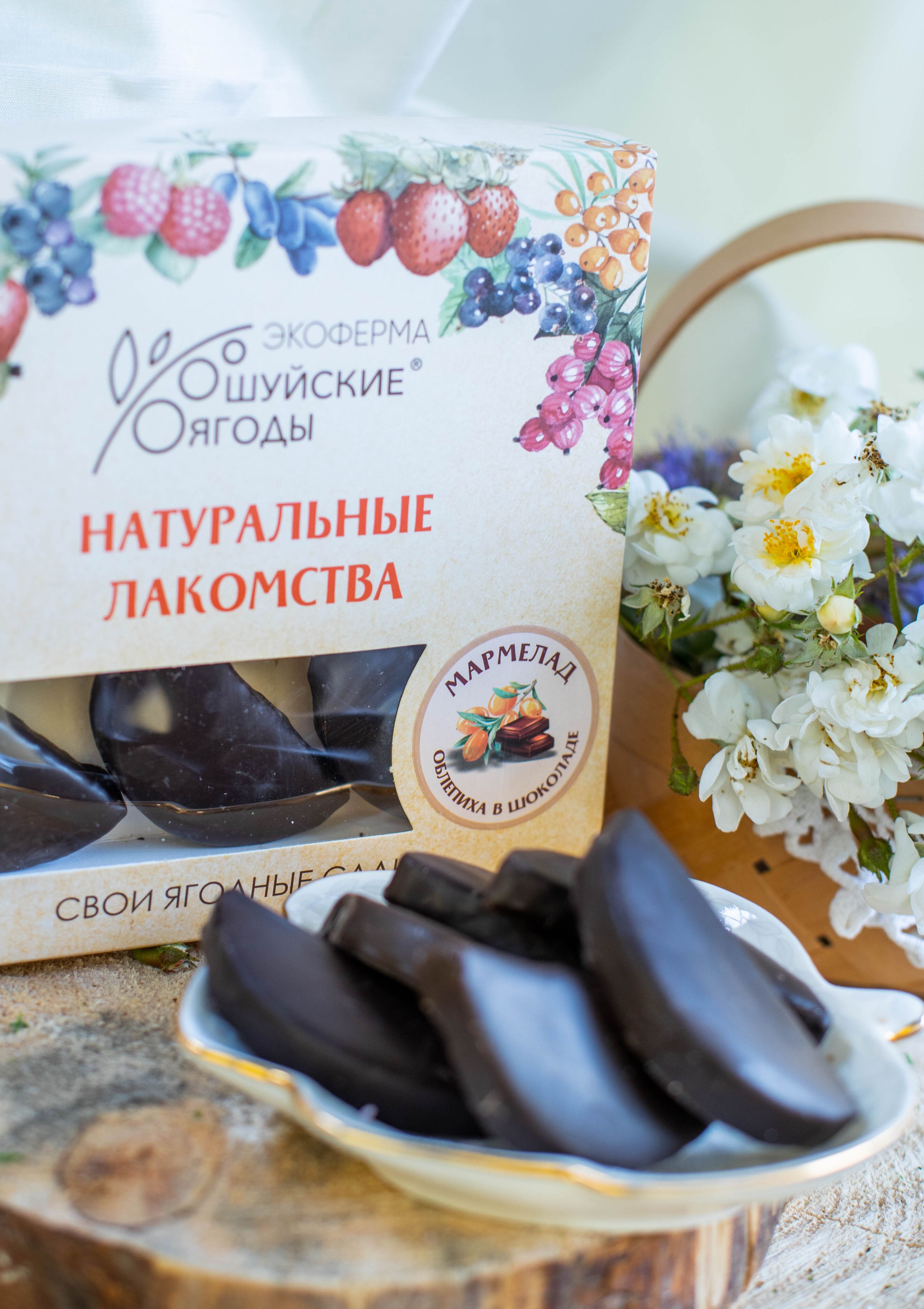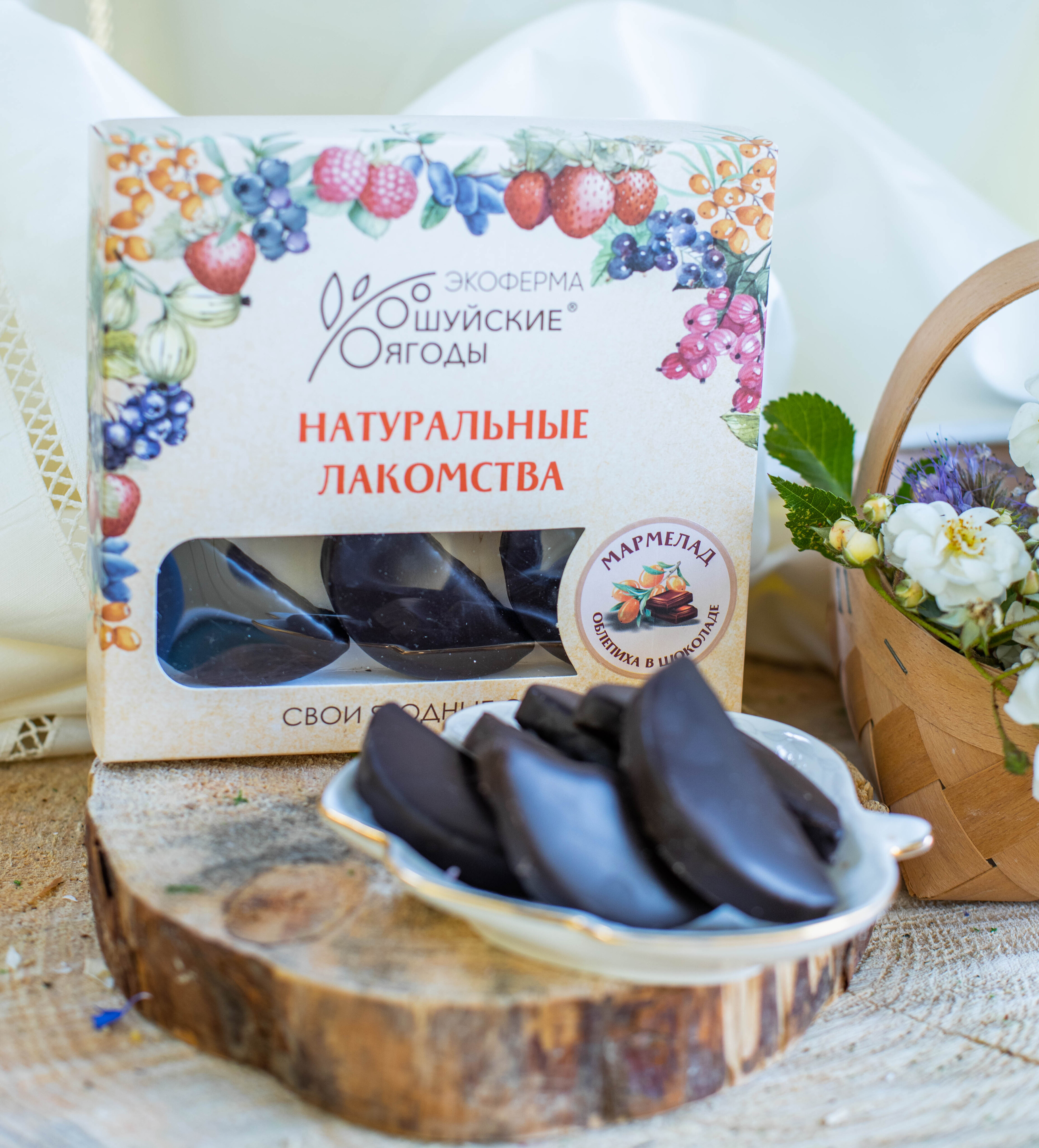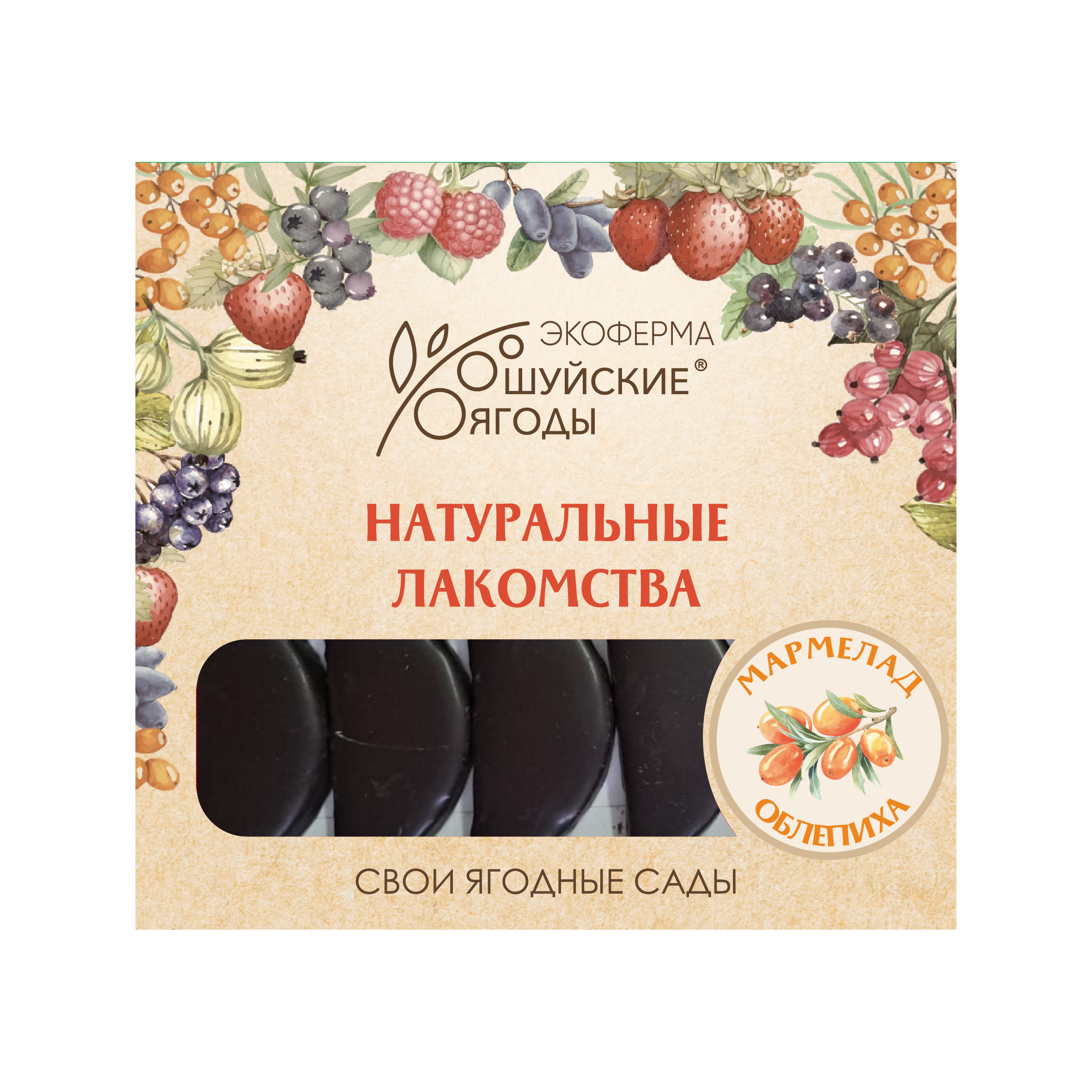 Мармелад «Шуйские ягоды» изготавливается на основе натурального сырья в виде облепихового пюре, приготовленного из ягод, собранных на нашей плантации. Наш мармелад в своем составе не содержит никаких пищевых добавок — ни ароматизаторов, ни красителей. Цвет и аромат придаёт натуральный ягодный состав.