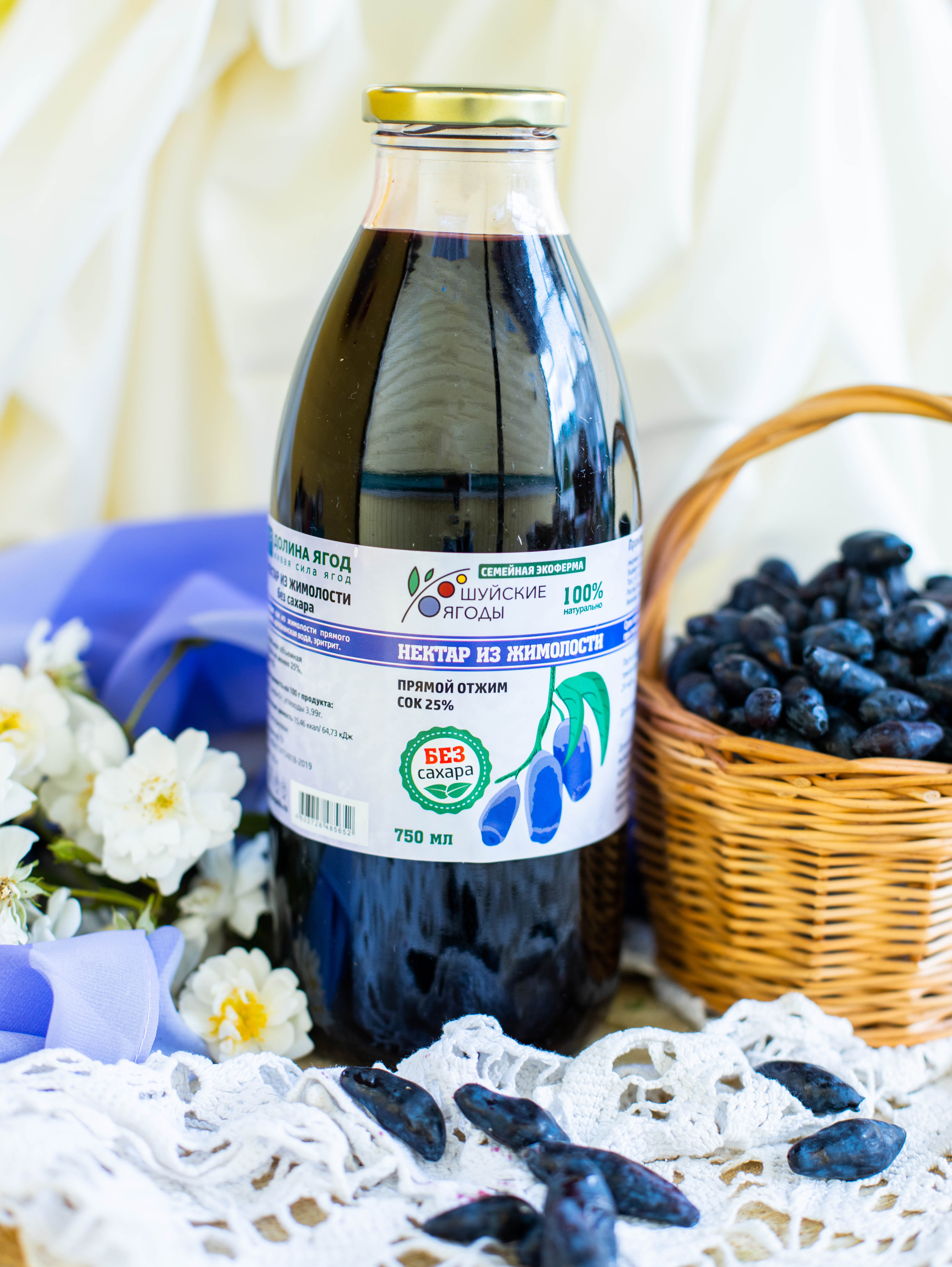 сок ягод жимолости прямого отжима не менее 25%,