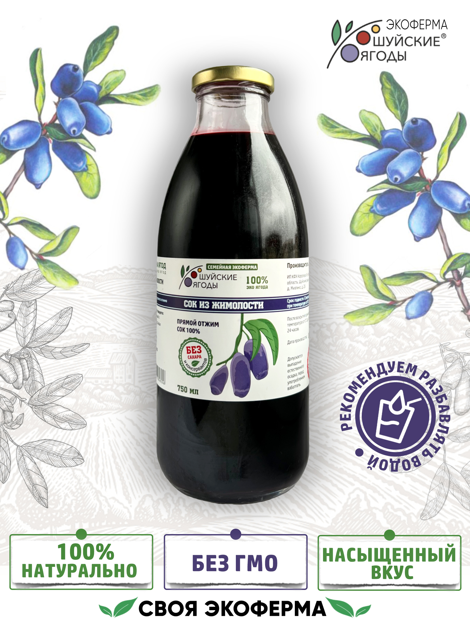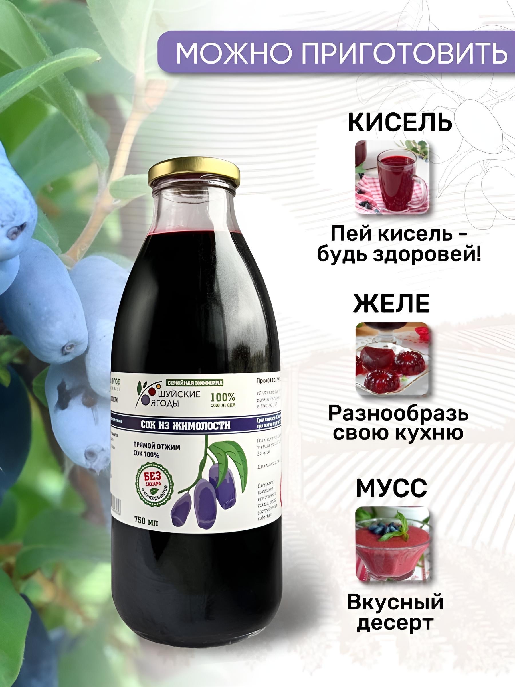 100% сок из жимолости производится в строгом соответствии с ГОСТом, без использования красителей, консервантов и усилителей вкуса. Ягоды жимолости очень полезные, они оказывают мощный антиоксидантный эффект, поэтому используются в качестве поливитаминного средства. Сок из жимолости отлично утоляет жажду, обладает приятным вкусом. Отсутствие сахара в данном напитке дает возможность пить его людям, страдающим диабетом, а также тем, кто худеет и поддерживает фигуру.