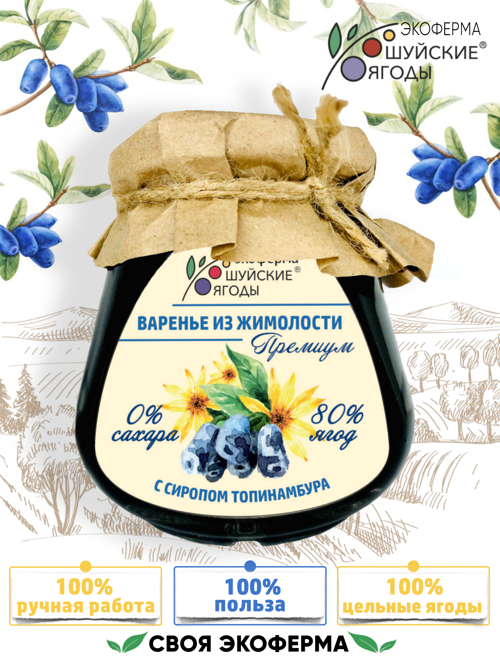 Низкокалорийное диетическое крафтовое варенье из жимолости с сиропом топинамбура имеет 100% натуральный состав. Оно производится в ручную из цельных ягод жимолости, выращенных на нашей экоферме, без сахара, фруктозы, консервантов и любых синтетических добавок. В качестве подсластителя используется натуральный и полезный заменитель сахара – сироп топинамбура, который содержит пребиотик Инулин, пектин, витамины, микроэлементы и полезные аминокислоты. Его гликемический индекс самый низкий среди натуральных сиропов. Он не повышает уровень сахара в крови и не замедляет обмен веществ, разрешен при диабете, укрепляет организм и выводит токсины, улучшает пищеварение и нормализует уровень холестерина.